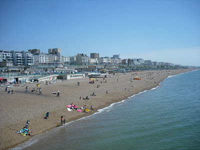Cloudless sunny day so the beach is practically boiling. I later found out that London had a very hot day as well.